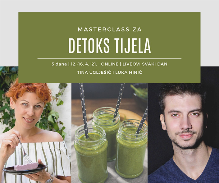 Zelenarium i ja (Tina), u suradnji s Lukom Hinićem, organiziram masterclass na temu: DETOKS TIJELA. Masterclass služi za dublje i dalje razumijevanje procesa detoksa, a sve s ciljem da polaznici masterclassa dobiju potrebna znanja da se odluče primijeniti mnoge mogućnosti detoksa tijela. Cijeli masterclass odvija se online, na način da dobivaš snimljena video predavanja u trajanju od cca 1,5 sat, za svaki dan posebno, svih 5 dana. Uz to, Luka i ja smo tu za sve sudionike masterclassa svaki dan, kad ćemo uživo online odgovarati na sva pitanja i razjašnjavati bilo kakve nejasnoće. Sve sudionike očekuje i skripta.